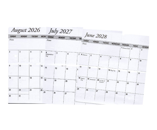 3 Full Years Calendar Insert Measures 6 1/2" x 3 1/2". Calendar Starts with January and Weeks Begin on Sundays.