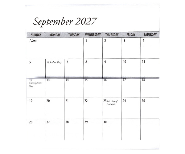 Cover Measures 6 7/8" x 3 3/4" when Closed. Custom Divider Flap to Hold Your Calendar Open to the Current Month.