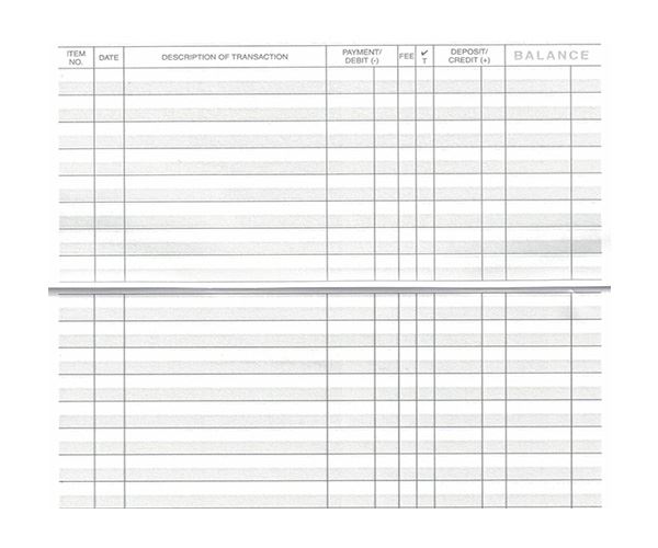 Standard Checkbook Register, measures 3" x 6" and has current 3 full year calendar on the back cover.