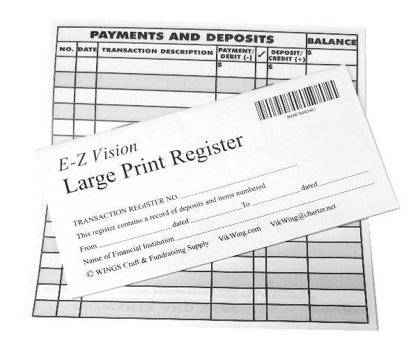 Large Print Register has Lines that are Twice as Wide as a Standard Bank Register with Easy-To-Read Alternating Gray and White Lines.