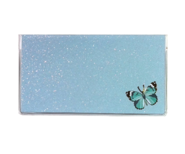 2 Year 2026 - 2027 Butterfly Glitter Pocket Calendar Planner w/ Notepad (Light Blue Butterfly)