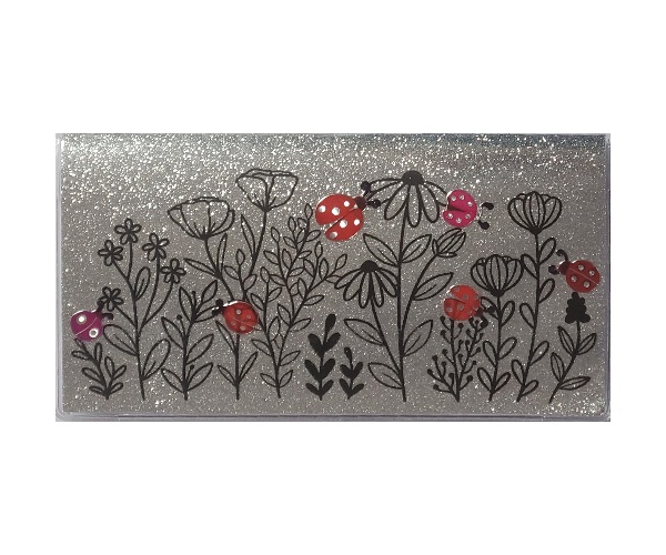 2 Year 2026 - 2027 Flower Glitter Pocket Calendar Planner w/ Notepad (Ladybug Flowers)