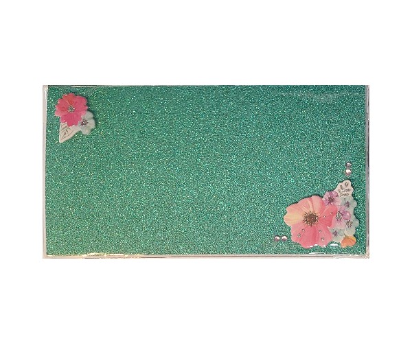 2 Year 2026 - 2027 Flower Glitter Pocket Calendar Planner w/ Notepad (Seafoam Green Flowers)