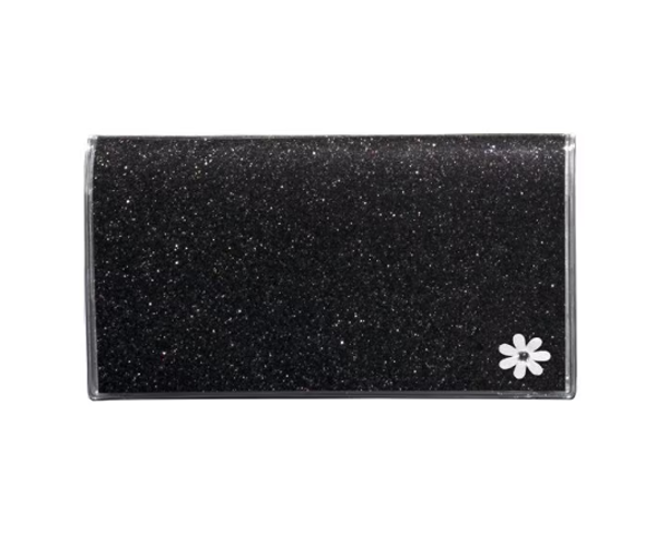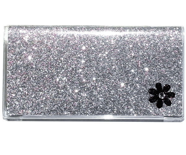 2 Year 2026 - 2027 Glitter w/ Black Flower Pocket Calendar Planner w/ NotePad (Silver Black)