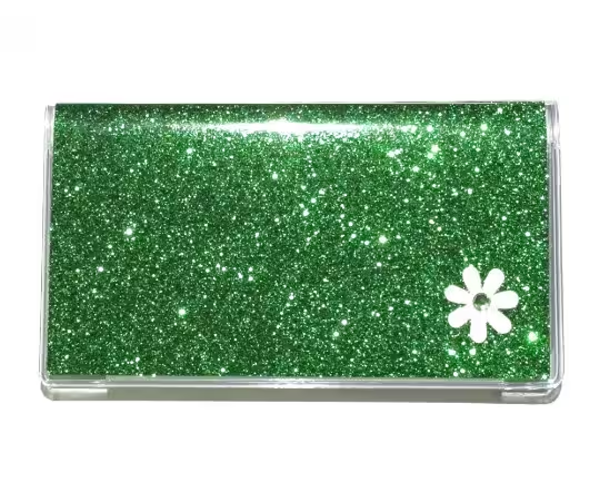 2 Year 2026 - 2027 Glitter with White Flower Pocket Calendar Planner w/ Notepad (Green White)