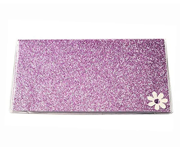 2 Year 2026 - 2027 Glitter with Purple Flower Pocket Calendar Planner (Teal Purple)