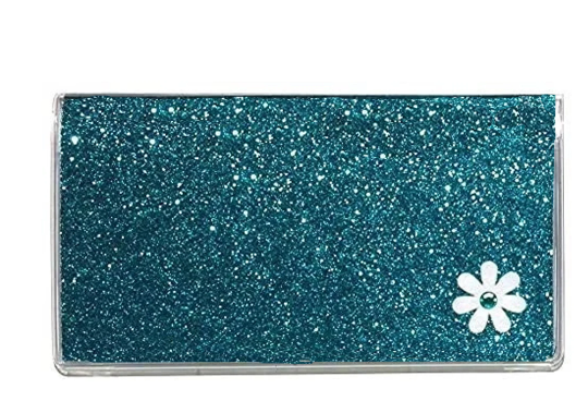 3 Year 2026 - 2028 Glitter with White Flower Pocket Calendar Planner (Teal White)