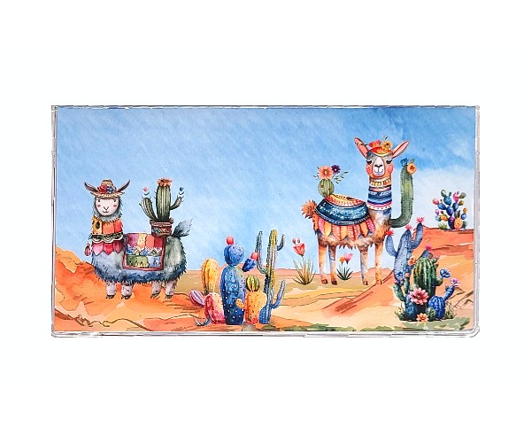 Cute Animal Checkbook Cover with Large Print Register (Alpaca Cactus)
