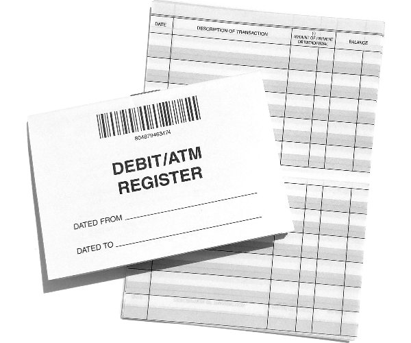 Debit Register has 32 Pages with 2 Year Calendars on the Back.