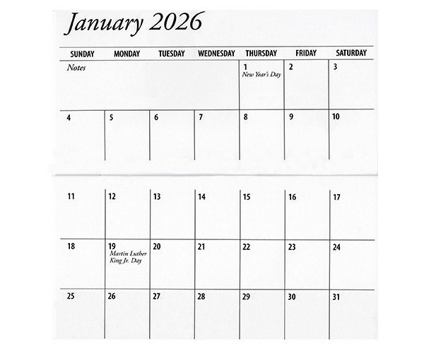 Keep track of important dates & holidays with this standard size pocket calendar.
