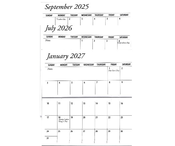3 Year 2025 2026 2027 Pocket Calendar Insert