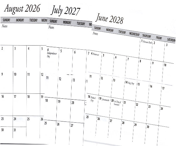 3 Year 2026 2027 2028 Pocket Calendar Insert